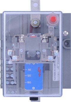 Die Maximalstromrelais können mit mechanischer Verklinkung mit Anzeigefahne und Entriegelungsknopf ausgeführt werden.